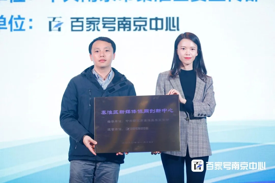 授牌儀式上,秦淮區(qū)委網信辦專職副主任祝鯤鵬向百家號南京中心授予“秦淮區(qū)新媒體協同創(chuàng)新中心”稱號。秦淮區(qū)宣傳部將攜手百家號南京中心共同為南京的內容創(chuàng)作者持續(xù)提供優(yōu)質的平臺和資源,打造自媒體孵化基地,推動南京內容生態(tài)的發(fā)展。