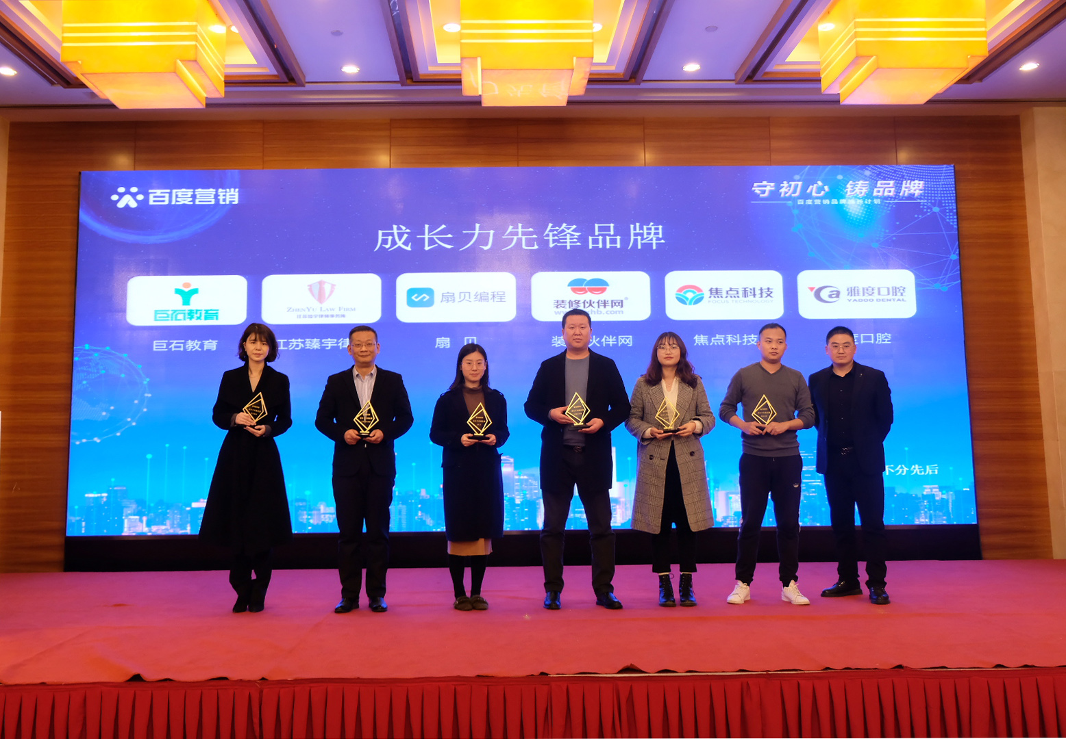 南京是一座歷史文化名城,同時也是一座創(chuàng)新名城,在創(chuàng)新的路上匯聚了眾多品牌力量。在發(fā)布會上,根據(jù)數(shù)據(jù)趨勢、百度搜索熱度排名等數(shù)據(jù),首屏百度營銷(南京)服務(wù)中心分別為巨石教育、焦點(diǎn)科技、扇貝、裝修伙伴網(wǎng)、江蘇臻宇律所、雅度口腔6家企業(yè),頒發(fā)“成長力先鋒品牌”榮譽(yù)獎項(xiàng),以鼓勵品牌企業(yè)長遠(yuǎn)發(fā)展。