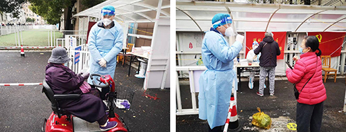 由于近期南京接連不斷的陰雨以及驟降的氣溫,給市民采集核酸帶來一些不便,面對(duì)個(gè)別市民因排隊(duì)時(shí)間久而產(chǎn)生的抱怨與不理解,他們細(xì)心講解、耐心開導(dǎo)、貼心安撫大家的情緒,確保核酸檢測(cè)工作有條不紊地進(jìn)行。